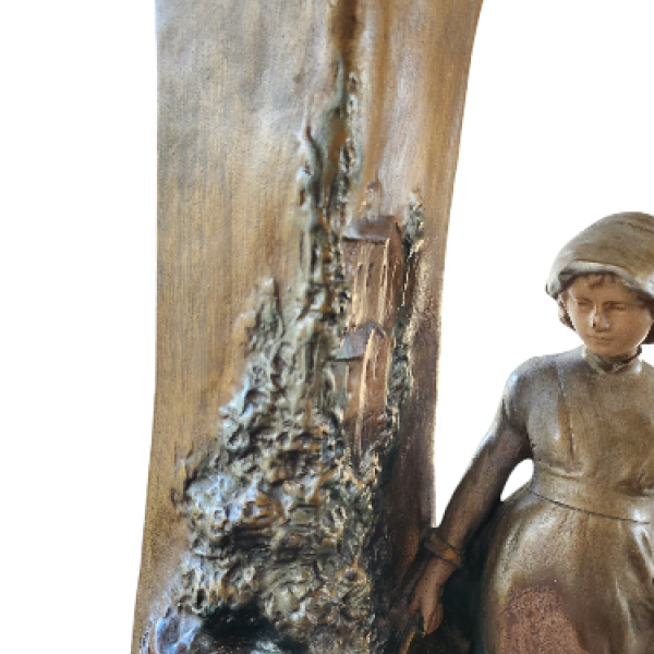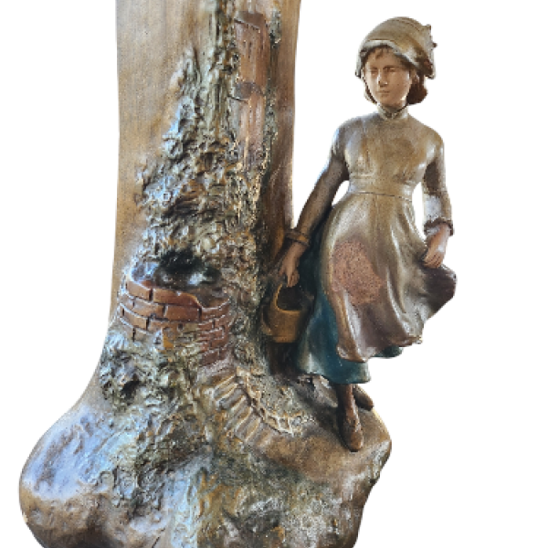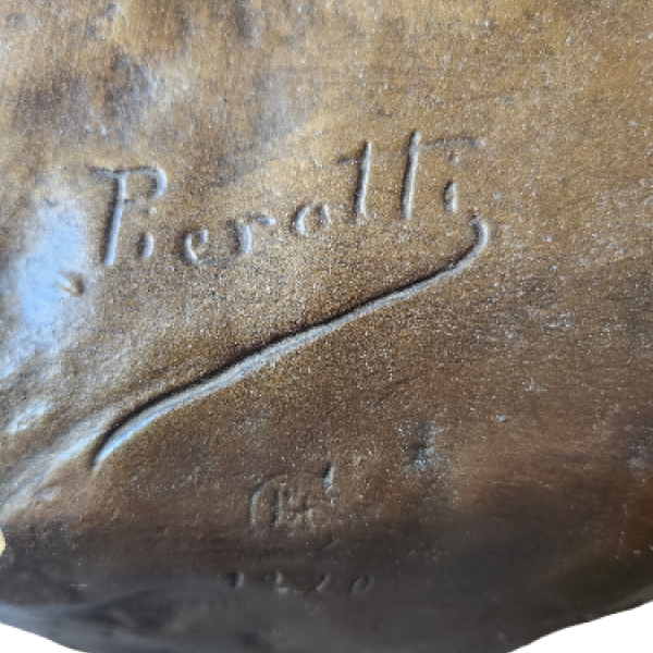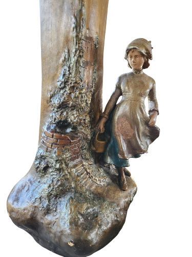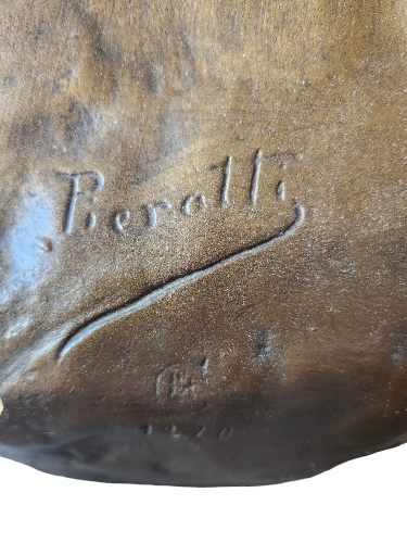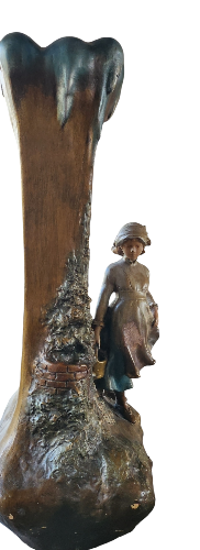 Vase Art Nouveau avec une sculpture en relief sur le côté du vase. Signé et numéroté Pierotti. Vase en Plâtre en très bon état pas de manque ni de fissure. Environ 50 cm de haut.