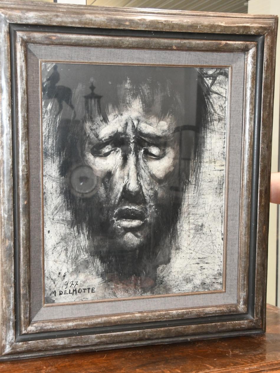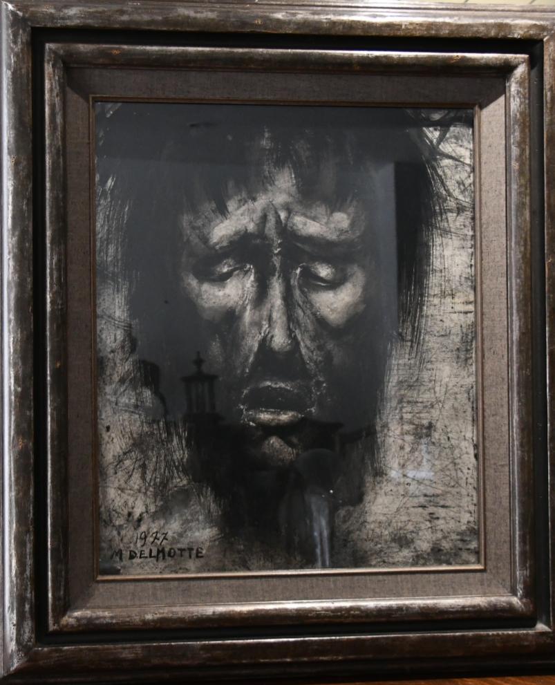 Superbe tableau sous cadre de Marcel Delmotte Marcel Delmotte peintre Belge côté Tableau représentant la tête du Christ Authentique avec certificat à l'appui Dimensions : 75x87 Marcel Delmotte, né en 1901 à Charleroi (Belgique) et décédé le 8 novembre 1984 à Mont-sur-Marchienne (Belgique)1 est un artiste peintre belge et surréaliste wallon.