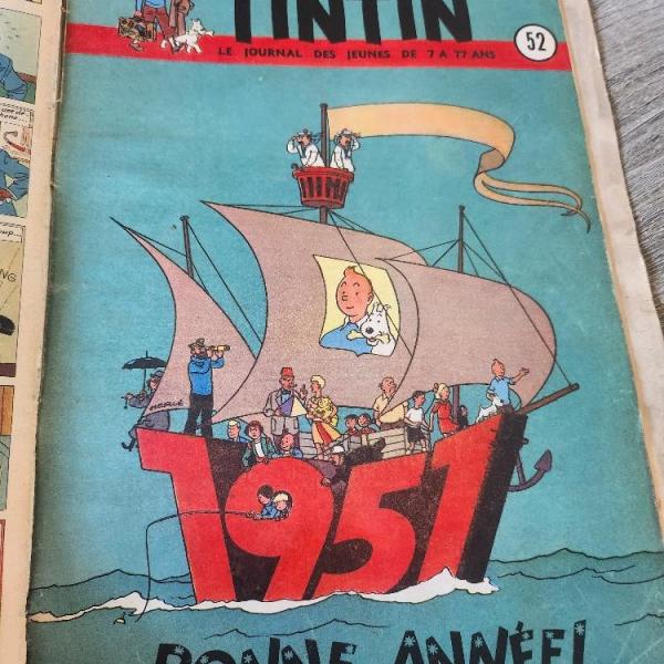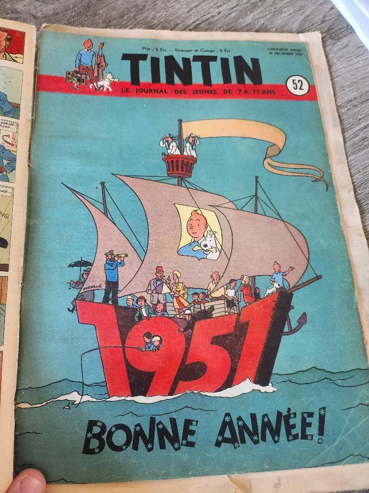 Lot du journal de Tintin de 1951 Quelques N° manquants du 1 au 6 ok du 8 au 38 ok du 40 au 44 ok du 46 au 52 ok Magazines très bon état et complets