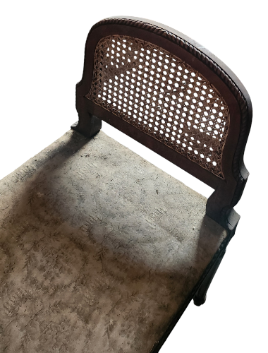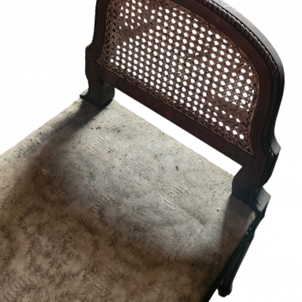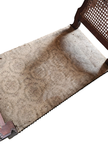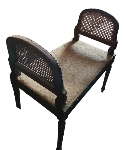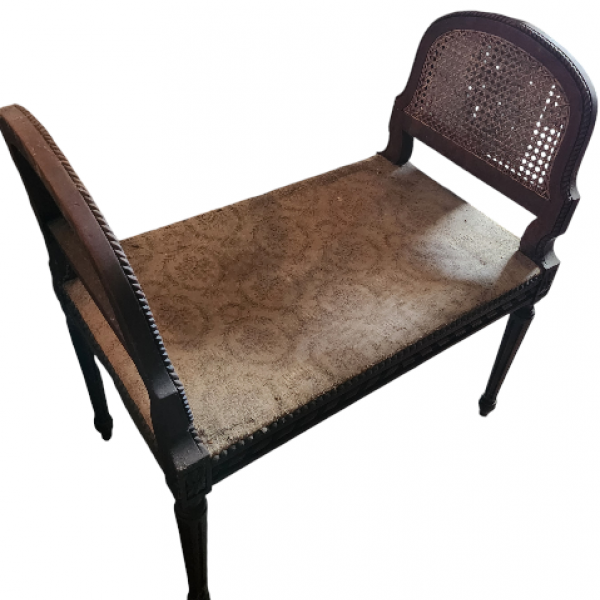 Banquette de Piano Louis XVI avec assise en tissus et les deux accoudoirs en cannage, tous deux en parfait état La structure en bois de noyer repose sur 4 pieds fuselés, peut s'intégrer dans tout intérieur. A rafraîchir, le tissus de l'assise