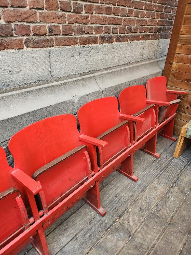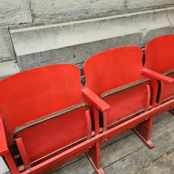 Ensemble de 5 chaises de cinéma Armature en bois - pieds en acier et assises en simili de couleur brun